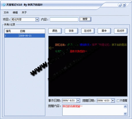 天堂笔记是一款笔记软件,您可以把它当成日记软件,也可以当成备忘软件,总之,您想把它当成什么软件就可以是什么软件。在同类软件中,天堂笔记增加了一些新功能,如批量更新提醒日期等