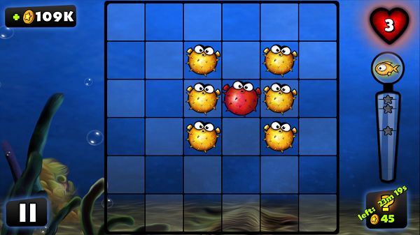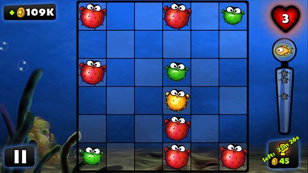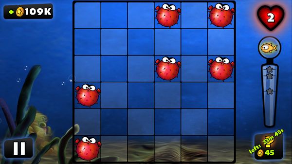 《小鱼爆破》是一款可以提高你智力的休闲益智类游戏。游戏背景故事是这样子的,bubbla金鱼女王被邪恶的河豚绑架了,玩家要使用智慧救出bubbla金鱼女王,你能成功吗?