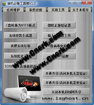 《联胜电脑装机工具箱V1.0》中包含3大类功能分别如下: