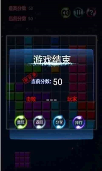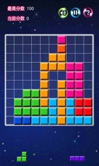 燃烧的方块在界面下方提供给玩家3个不同类型的方块,玩家根据判断选择将方块拖至格局中的任意位置,把一条竖格或横格连成一条直线就能消除。使用完已给的三个方块系统才会再重新分配你三个不一样的方块,当格局中已经放不下所给的方块时,游戏结束。