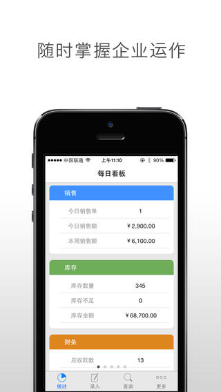 3、老板/管理者通过手机时刻了解业务进展、掌控公司运作,不用事事追问员工* 商贸型企业,请搜索“百草进销存”