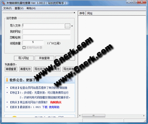 友情链接批量检查器 V1.0613 简体中文绿色免费版 批量检查会员网站是否提供了有效的友情链接。