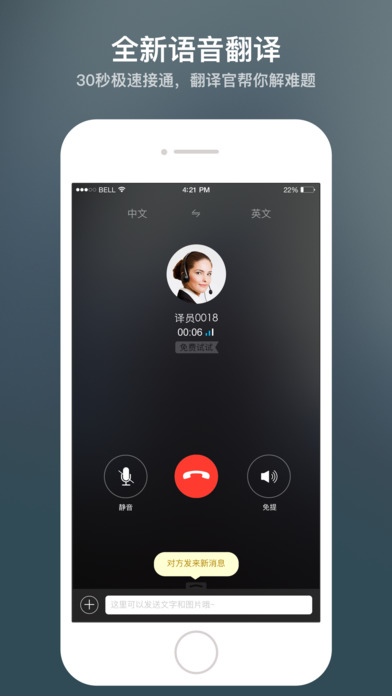 支持英语、日语、韩语。实时连接在线专人译员,提供综合翻译服务,做你的随身翻译官。