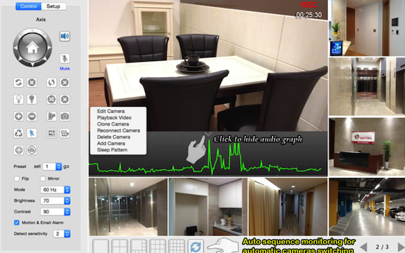 uNetCams: Multicam Monitor for Mac可以配置多达100台摄像机,直接访问到音频和视频流从照相机,简单地播放视频从预定,事件记录按每天或每小时搜索。自动记录视频与音频的应用程序在噪音和运动/人脸检测,监视多个品牌的摄像机和网络摄像机分别位于单个应用程序以便轻松访问。uNetCams: Multicam Monitor for Mac Exchange安装程序文件Mac设备之间,或从 iOS 设备通过电子邮件附件导入它。允许设置没有用户名和密码在世界任何地方的公众相机,与动态 DNS 服务兼容。