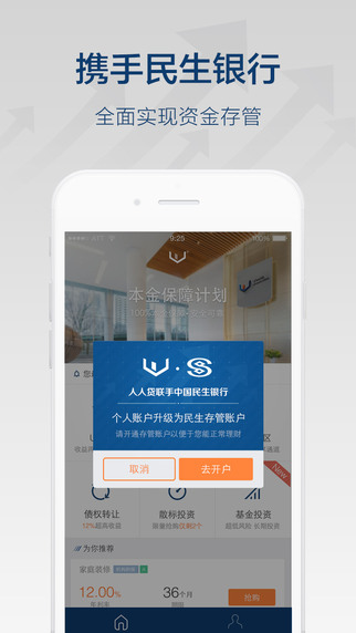 人人贷app预期收益10%+,100%享受本金保障计划所有投资标的100%适用本金保障计划,人人贷风险金账户已被民生银行托管,有效保障理财人的本金安全。