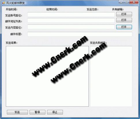 风火轮邮件群发 V1.1 简体中文绿色免费版 风火轮邮件群发工具是和邮件搜索在线工具一同开发的邮件营销工具。只要将使用邮件搜索在线工具收集的邮箱保存在一个普通的文本文档里,在软件界面上提供正确的文件位置;注册并填写发送邮箱;再导入邮件内容即可将您写的邮件发送到您收集的所有邮箱中。为您宣传企业信息或传播文化提供方便。
