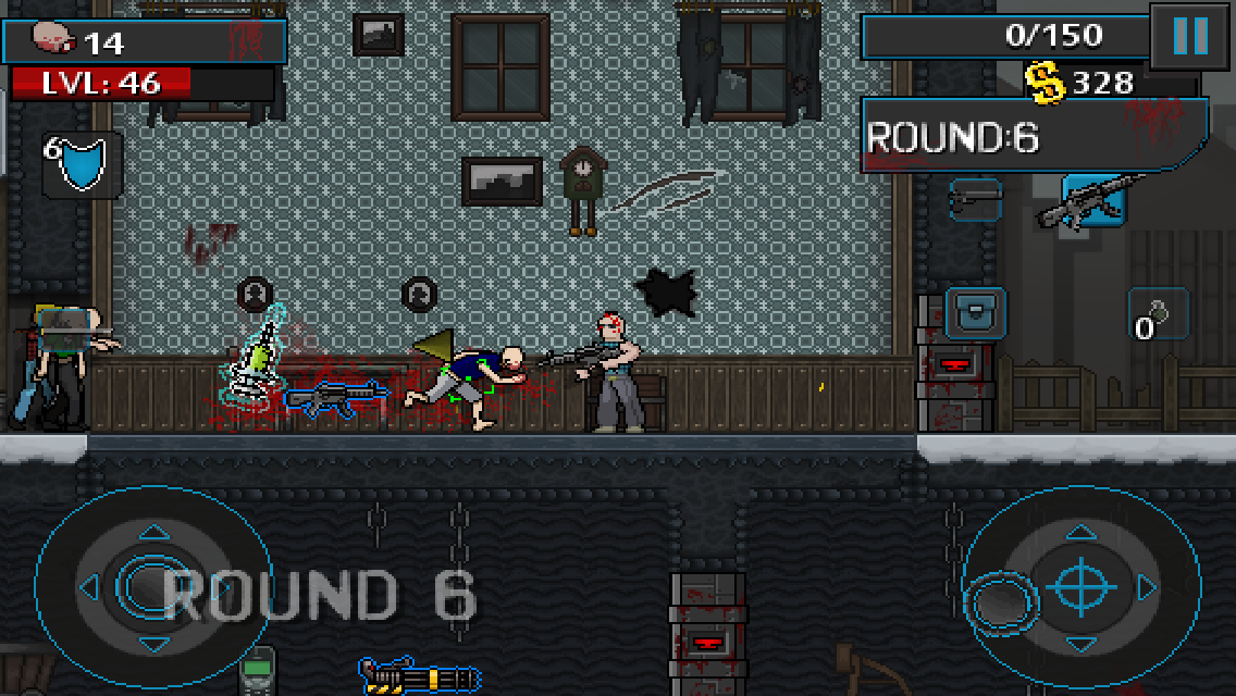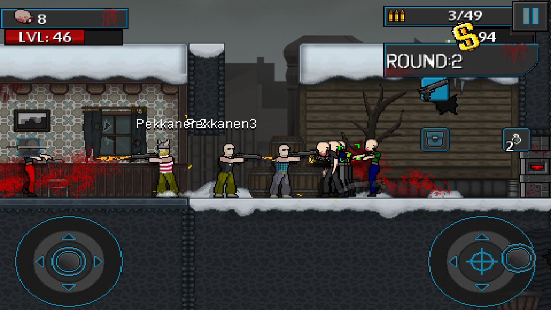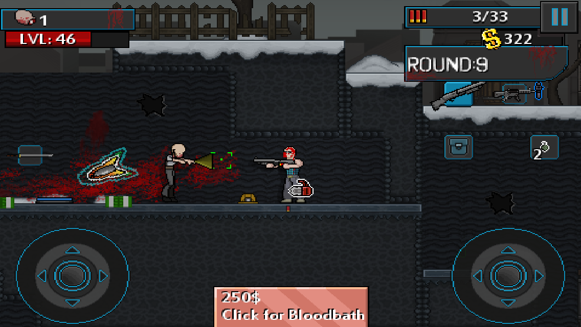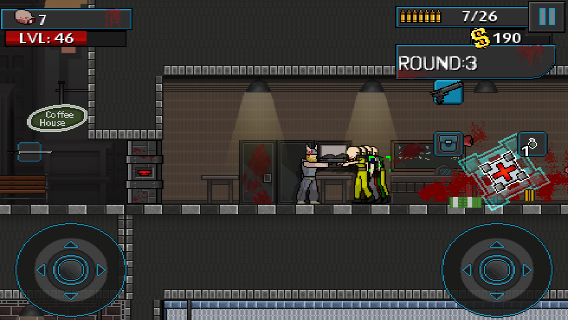 僵尸击杀重生版是个13年时候的一个同名游戏的续尾成果,来源于更早之前的桌面平台的较有名气的独立游戏的复刻。这个游戏的玩法类似使命召唤的僵尸模式,包括解锁区域和购买枪支等,不同的地方在于这个游戏是像素2D风格而且也没那个3A游戏那么知名。【游戏特点】