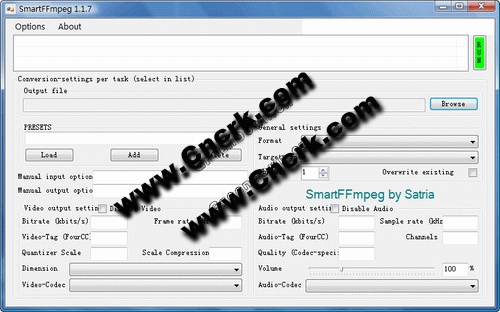 SmartFFmpeg V1.1.7 英文绿色免费版 该SmartFFmpeg应用的目的是将一个FFmpeg图形用户界面 ,控制所有的音频,视频和容器格式!当主机的应用设想,完全工程ffmpeg与无数的参数,由哪一个不具有时代的最重要的一定的头部。即使,它是一个艰苦的方式来完成手动或超过要求的文件的转换。原来是相当灵活和冗长