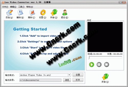 Leo Video Converter V1.30 汉化绿色特别版 Leo Video Converter是一款非常好用的视频转换软件,它可以转换成许多视频格式,例如DivX, XviD, MOV, MPEG-4,MPEG, WMV, H.263,AVI,ASF ,简单的界面使用起来非常的方便快捷