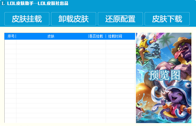 LOL皮肤助手是一款由LOL皮肤社推出的LOL免费皮肤挂载器,这款皮肤助手绿色简单、安全稳定,不会造成封号,帮助你更好的进行皮肤管理,还有众多辅助功能,欢迎免费下载使用!