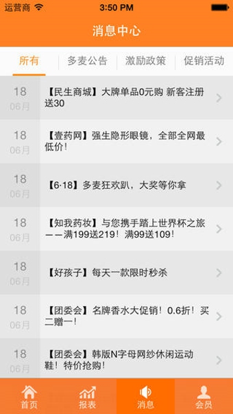3、消息中心:多麦公告,商家激励政策,商家促销活动及时推送;