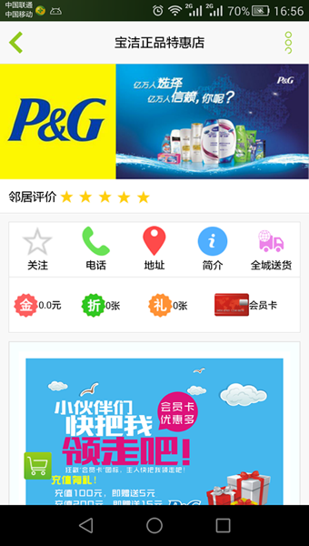 在线领取社区周边各类热门商家的电子会员卡,购物卡、美容卡、洗衣卡、洗车卡……一个卡包随身携带;积分、消费记录、充值、当面付,一卡在手,功能全有!再也不用卡到用时方恨少,卡到用时还要找!“社区生活服务” : 在线物业服务、社区跳蚤市场、便民信息 , 一目了然。