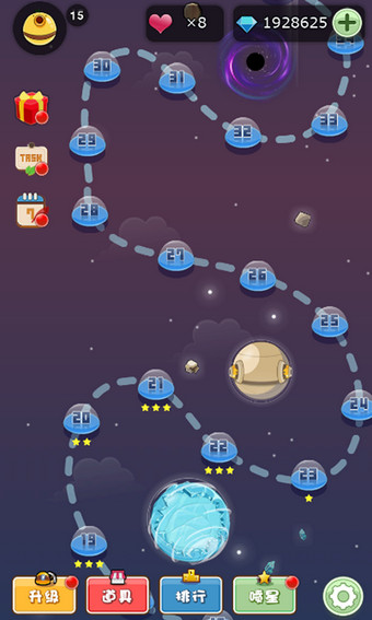 星星矿工手游是一款非常好玩的采矿类休闲益智手机游戏,该手游具有创新性的玩法和卡通的游戏画面,且完美融合了飞行,养成,物理等元素,玩家还可以通过排行和送体力跟其他朋友交互,让你一玩停不下来。