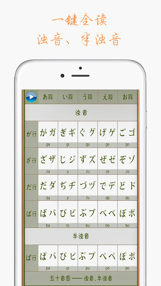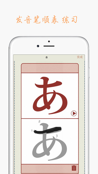 1点击相应假名即可听到相应发音,也可一键全读.2长按或双击相应假名还能看到相应的笔顺,触摸手写练习.