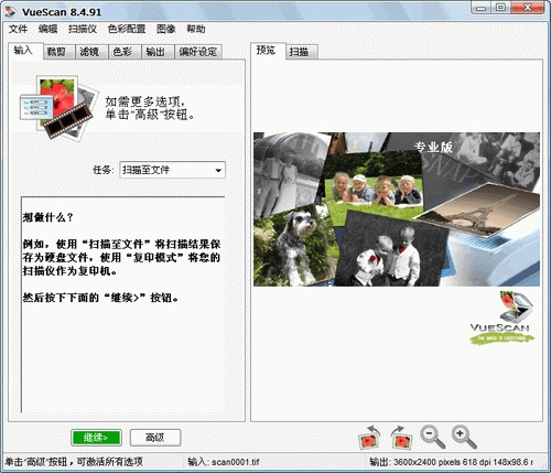 VueScan是著名的第三方底片扫描仪驱动程序,支持市场可见绝大多数型号的底片扫描仪,可以更为灵活地控制扫描过程,更深入地发掘硬件潜力,获取色彩完美的高质量扫描结果。