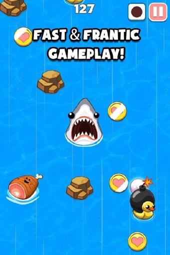 鲨鱼爱火腿是一款以鲨鱼为题材的躲避类休闲游戏,在游戏中你需要躲避鲨鱼去收集金币。疯狂鲨鱼们在找寻牠们最喜欢的点心,所以你一定要避开牠们的血盆大口!