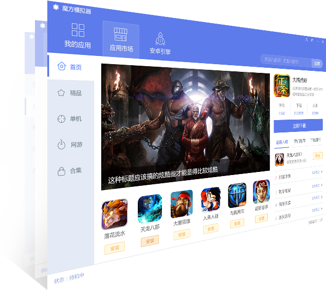 魔方网顺应潮流推出魔方模拟器,帮助玩家在电脑上玩手游。为了适合不同配置的电脑使用,魔方模拟器提供三种安卓引擎,安装时会自动识别PC硬件安装适合安卓引擎,绝对让每个玩家都玩的轻松便捷。