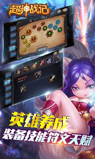 《超神战记》是完美融合养成与竞技的创新手游,通过超精美的画风和超高的经典玩法,达成召唤师的超神梦想。熟悉的Q版人物,精致的地图场景,更是唤醒了召唤师们内心的震撼。野区对战,天梯登顶,符文天赋,装备技能,感受养成的快乐;走位躲闪,卡位打断,灵动指尖,掌上超神,体验竞技的快感。超神战记,等你演绎。【英雄符文石获取来源】