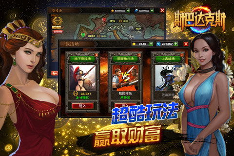 超炫战斗,一站成名,《斯巴达克斯》千万奴隶任你消遣!《斯巴达克斯》是古罗马背景角斗士题材,玩家扮演奴隶主经营自己的角斗士学校,购买并训练武装角斗士,使其参加各种比赛,从而赢取无上的荣誉,并可以和其他玩家同台竞技。