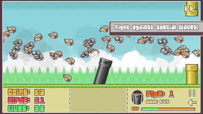 《Flappy Defense》是一款射击版反Flappy Bird的游戏,玩家要用游戏中的“大炮”来攻击那群疯狂飞来的小鸟,还可以利用游戏获得的钱币来建立新的防御设施,不过玩家只能拥有1门炮,打鸟的任务还是很困难的。游戏中,也有大BOSS,但玩家可以升级更强大的大炮来对付它们。总之,你在《Flappy Bird》受的气,都可以在《Flappy Defense》里找回来。【游戏特点】