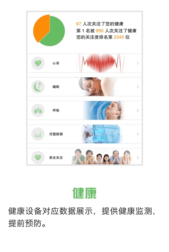3.实时显示所用健康设备搜集、分析的健康体征数据,为医生提供更详细的数据。