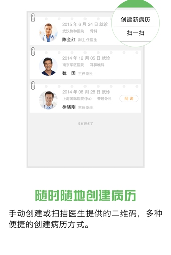 1.用户根据自己就诊情况创建病历,随时向自己的接诊医生咨询寻求帮助。