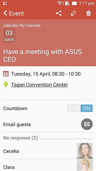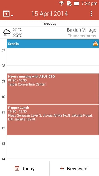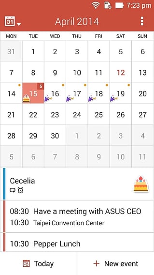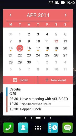 【】深度整合ZenUI多项重要软件,是您华硕安卓装置上不可或缺的日历软件。 【】不仅为您忠实记录每天的行程,更聪明为您汇整工作生活大小事情,呈现您在本地日历、Google日历、Exchange日历,或是其他完成同步帐户设定日历中的事件。 ZenUI也知道您的时间宝贵,为您规划最高效流畅的使用介面,是您高效工作,享受快乐生活无可取代的利器。