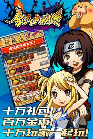 可曾记得犬夜叉手中翻飞的铁碎牙?还记得卡卡西老师永远都看不完的热情天堂吗?记得三笠一直围着的红色围巾,还有乌龙纯(sang)真(xin)无(bing)比(kuang)的向神龙许愿得到的那条女孩子……的内裤?悟空,小林,杀生丸,鸣人,银桑,艾伦,这些英雄们将在精彩的重构世界中化作你的同伴,陪伴你一起探险!酣畅淋漓的战斗,精致华丽的的画面,没有下限的吐槽和节操碎一地的"精美"道具,尽在全民大动漫!【游戏特点】