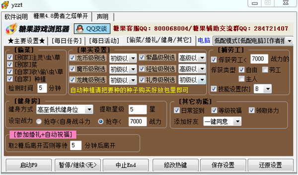 勇者之塔辅助自动偷菜、种值和捕劳工,还可以自动参加婚礼和自动祝福。