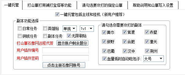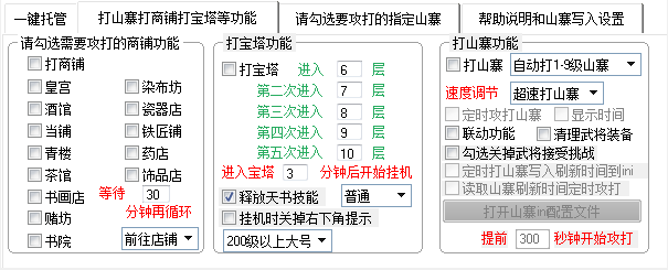 糖果天书世界辅助自动打山寨(调试打山寨,自动卖垃圾装备等)、打商铺(细分商铺、可单独选择及一键收益)、打宝塔。