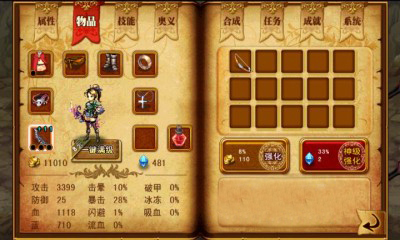 玩家选择装备即可穿戴获得装备,点击技能即可升级和学习新技能,选择龙魂可以强化角色各种能力,如:攻击、防御等等!点击界面右下方的开启进入场景关卡!