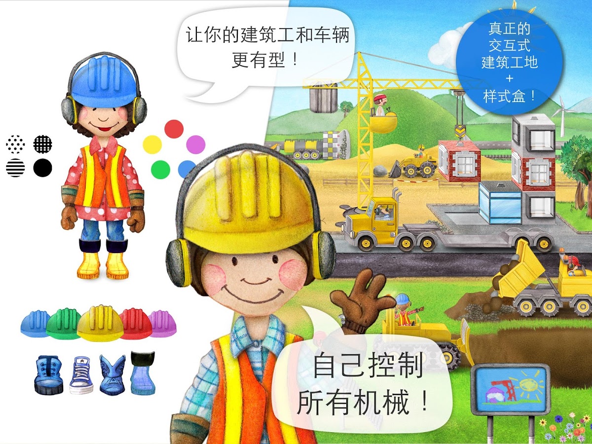 你是否痴迷建筑工地和建筑机械?来小小建设者安卓版的建筑工地吧,你可以在这里自己操控起重机、挖掘机、推土机、装载机、隧道凿岩机和其他各种机械,动动手指就可以全盘掌控。最爽的是:你还可以自定义小建筑工的造型,让他更有个性。【游戏特点】