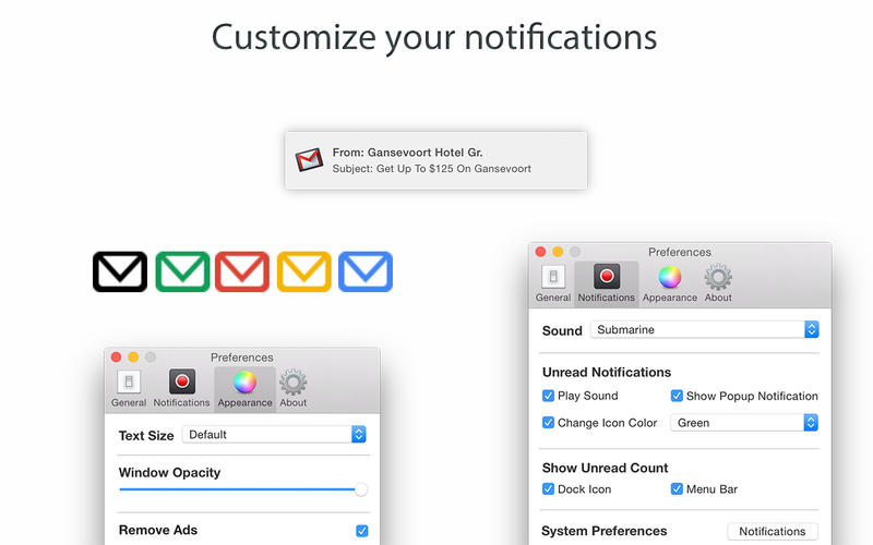 Go for Gmail for Mac支持通过Mac的菜单栏即时访问Gmail帐户,邮件消息以声音和颜色标注通知。软件提供两种视图模式选择,可以调整窗口的透明度和大小。新邮件通知会和系统通知一样以弹窗形式出现。Go for Gmail for Mac完全支持Mac OS X的操作手势,为最新的OS X 10.10特别优化。另外,提供自定义的字体大小修改,热键,画外音的辅助功能,结合赏心悦目的界面和软件设计。软件提供定期的免费更新。