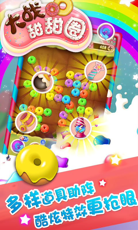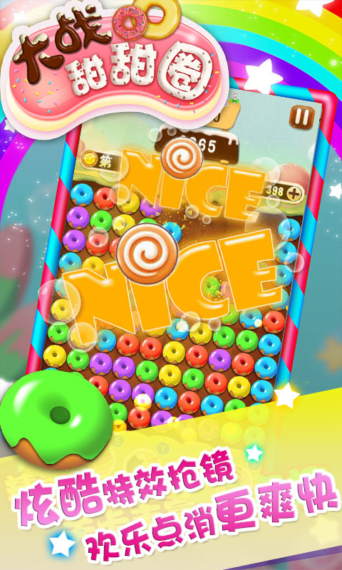 炎炎夏日,清新可爱的冰激凌蛋糕风给大家带来一丝清凉。全民休闲,上手简单,只要轻松点击相同颜色的蛋糕圈圈即可完美消除,看似简单而又不简单,关关挑战,你会发现这是在挑战你能力,让你欲罢不能,爱不释手。游戏以糖果蛋糕为主题,Q版的画面风格,轻松欢快的音乐旋律,绝对颠覆你的感官。这个夏天,不仅有欢乐消除,还有冰激凌为伴,超级上瘾,清凉和令人陶醉的消消乐,绝对能在炎炎夏日给你带来一丝冰爽。【软件特点】