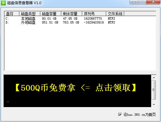 磁盘信息查看器下载 1.0 绿色版 磁盘信息查看器是一款小巧绿色的磁盘小工具。该工具可以帮助用户轻松查看电脑中磁盘的基本信息,磁盘数量、磁盘类型、磁盘容量、磁盘剩余容量、磁盘序列号、磁盘文件系统轻松查看。