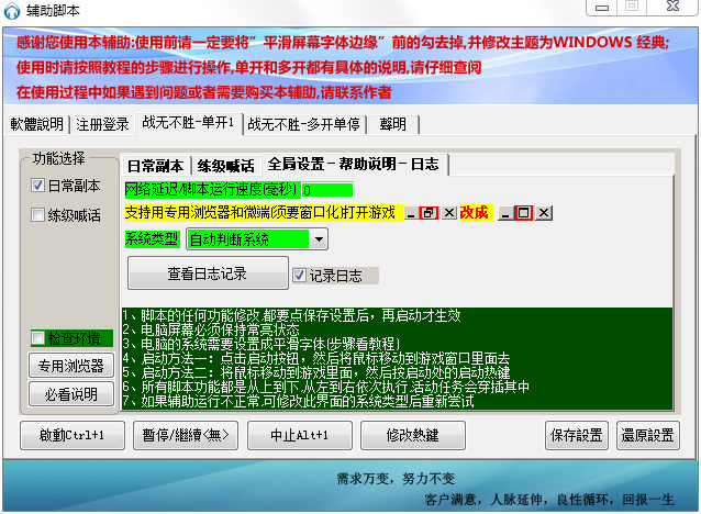 1、脚本的任何功能修改,都要点保存设置后,再启动才生效2、电脑屏幕必须保持常亮状态