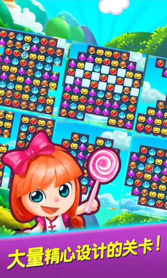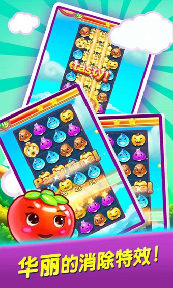 《快乐消消乐》是一款轻松休闲的策略益智类三消手机游戏。游戏以美食为题材,以丰富的关卡、精美的画面、可爱亮丽的画风、动听的音乐为特色。每一个关卡都是精心设计,玩家需要开动脑筋,选择正确的过关方式,达成过关目标。丰富的关卡数量,让人一旦上手便欲罢不能,不同的消除数量可以形成特殊元素,包括横线、爆炸、甚至全屏消除等,没有时间限制,但是每一关有目标分数,你需要经过仔细思考,才能得到更高的分数。