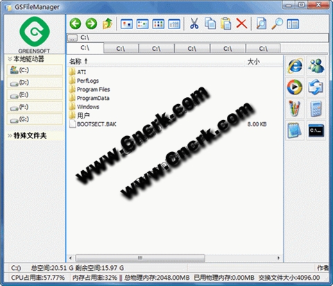 9、便捷的文件夹信息显示方式。可自动显示当前磁盘容量,剩余空间,当前目录大小,CPU占用率,内存占用率等信息进行显示。