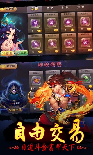 开放的交易系统,高福利,高掉落,不花钱也能玩得好,游戏赚钱不是梦。