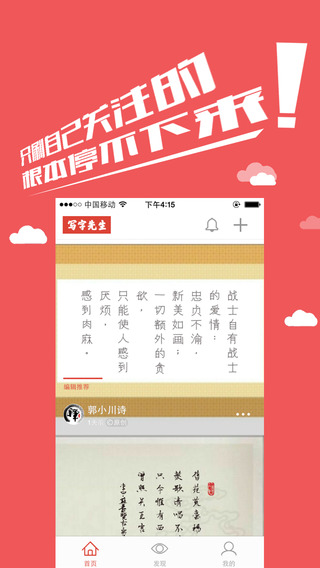 中国最专业、最懂字体,最关注书写感的团队诚挚出品,毛笔、钢笔、铅笔。。。什么笔形都有!超级方便!不光能在线发布作品、临摹、评论交流,还可以wifi批量下载,本地临摹。
