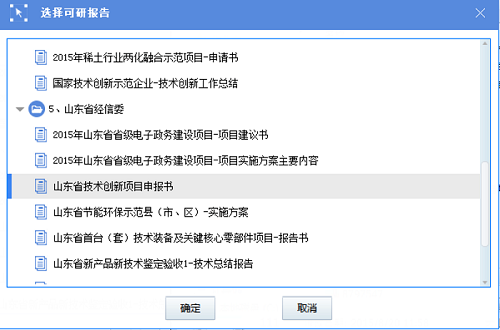 左侧操作区——空白可行性研究报告大纲(目录)选择区可以选择需要填充内容的各级目录