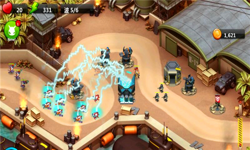 没错!外星人又来啦,游戏设定在外太空,按照惯例依旧是人与外星入侵者的战争。画面色彩艳丽,细节出众,每个场景地图都极具特色,虽然炮塔、小兵都被迷你化,但是线条依旧清晰,战斗紧张刺激! 游戏共有四种炮塔,包括机枪塔、镭射光线塔、兵站塔和榴弹塔,通过定点放置炮塔来抵御敌人不同路线的进攻,多路线设计也算是个亮点。除了炮塔之外,游戏融入了《王国保卫战》中的英雄系统,可以随时调动英雄位置,提高战队整体机动能力。
