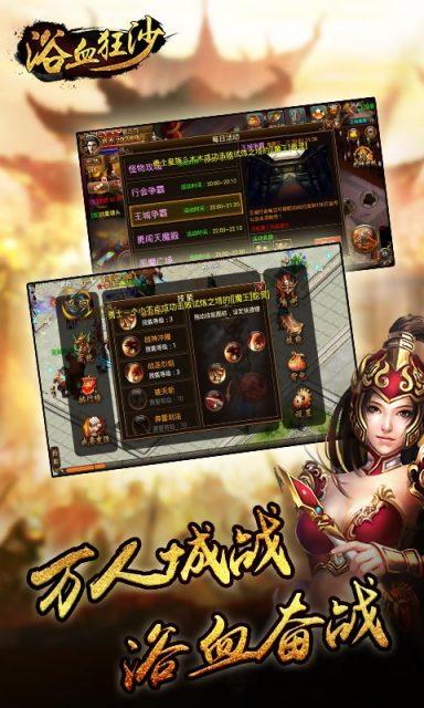 《浴血狂沙》全新版本震撼来袭,万人城战,公会抗争,全方位操控自由PK,再现传奇经典。嗜血PK、皇城争霸、酷炫翅膀、超级BOSS、新式副本等应有尽有,激烈刺激的对抗,更加真实的打斗效果,与你一起回忆精彩的传奇世界。即时pk,畅快淋漓的操作手感,惊艳的打斗特效。