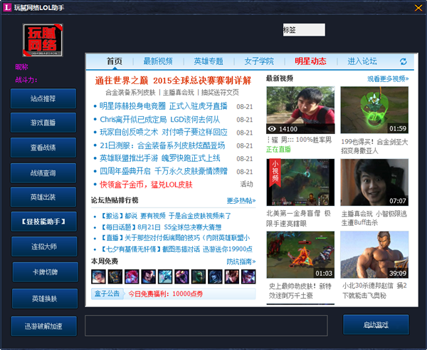 玩腻LOL助手是玩腻网络论坛为英雄联盟制作的一款综合性辅助工具,新增迅游破解加速、卡牌切牌、连招、挂载皮肤等功能,完美pk英雄联盟盒子的一切功能。