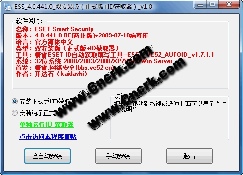 ESET Smart Security V4.0.441 双安装官方简体中文版 1、本版本内置2009年7月10日的病毒库。