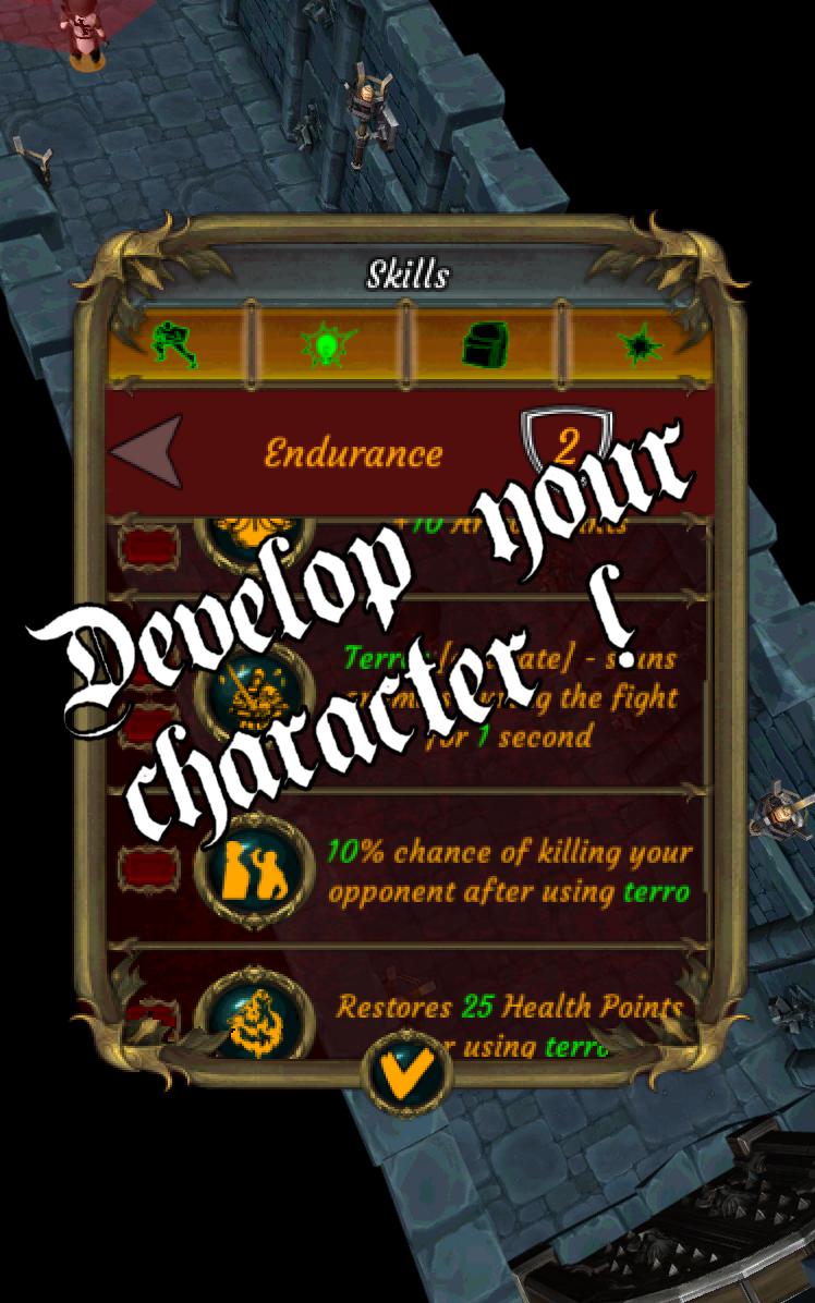 升级你的英雄,用经验点数增加你的英雄的暗杀、耐力或格斗能力