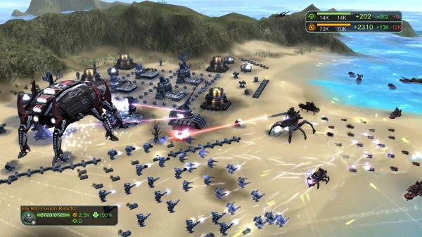 《最高指挥官》没有“小型战场”,它带给玩家的是陆地与海上、星球与星球,甚至是全宇宙的大规模战争。强大的游戏引擎建立起令人叹为观止的游戏规模,无限量的军队上限,穿越不同地图的超大型战役,成千上万的单位在终极战争中交织出史诗级的战斗画面。
