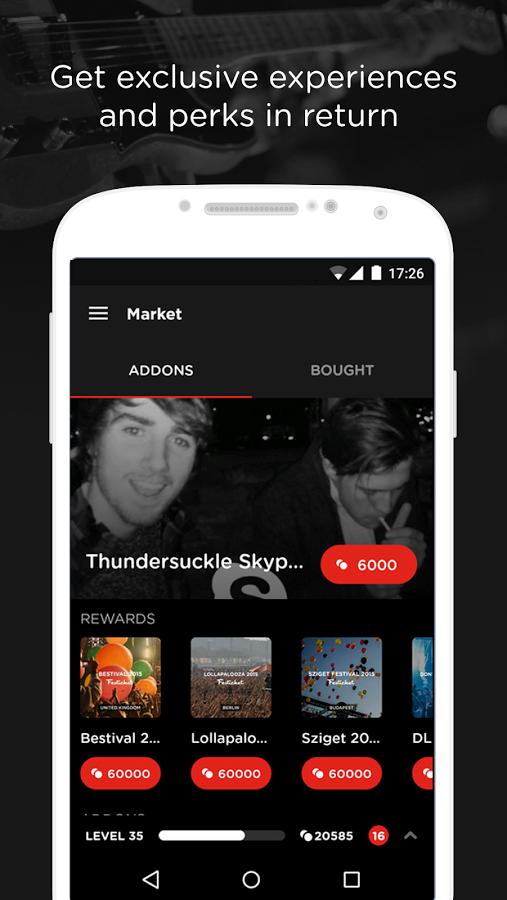 每一天用户发现新的音乐,帮助歌手获得广播,节日预订甚至是合约的机会。那些具有敏锐的耳朵察觉人才赚取券,门票和与自己喜爱的艺术家接触的机会。