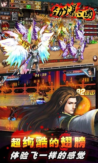 劲爆三国是以三国时代为背景的横版格斗角色扮演类手机网络游戏。该游戏闯关玩法经典,动作爽快流畅,技能连招绚丽,操作上手简单。在劲爆三国中除闯关升级之外,还可强化武器装备、提升进阶技能、觉醒潜藏武魂、结交好友、组队打魔王、参加全服团战打BOSS等丰富的游戏活动。