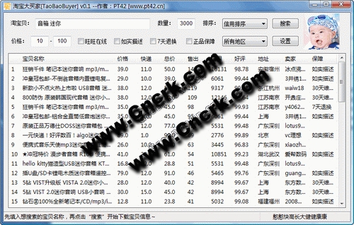 淘宝大买家(TaoBaoBuyer) 是一款方便淘宝买家对淘宝的海量宝贝中的价格、快递费、已卖出数量、卖家信用、卖家好评率等信息进行搜索、比较、排序的绿色小软件